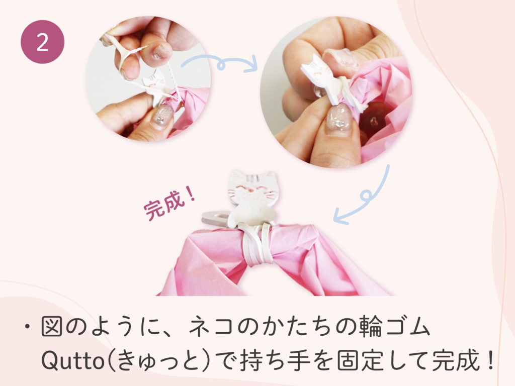 動物の形の輪ゴムでラッピング