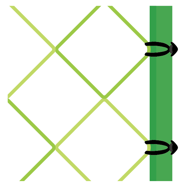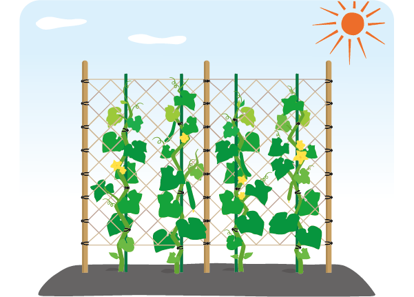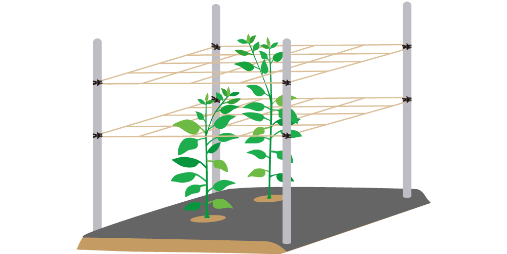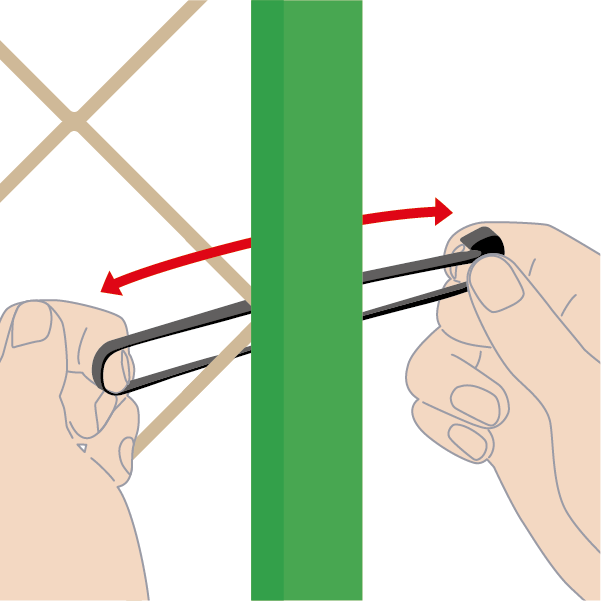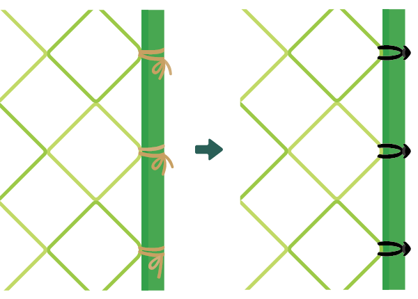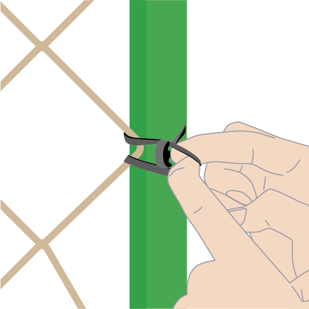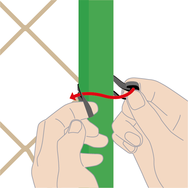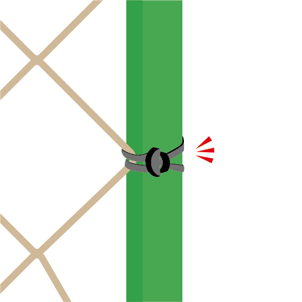 紐のカットや結ぶ手間を削減して、支柱やネットの固定が短時間で完了