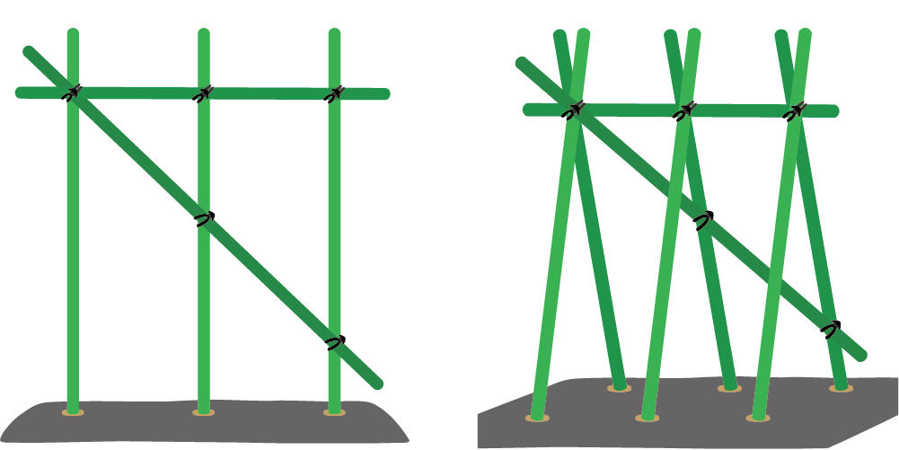 直立式や合掌式の支柱の組み立てに