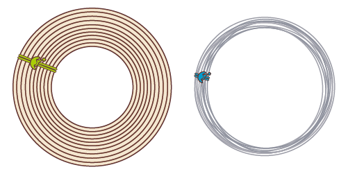 たばねバンドなら、横からくるっと巻きつけてヘッドをひっかけるだけ。